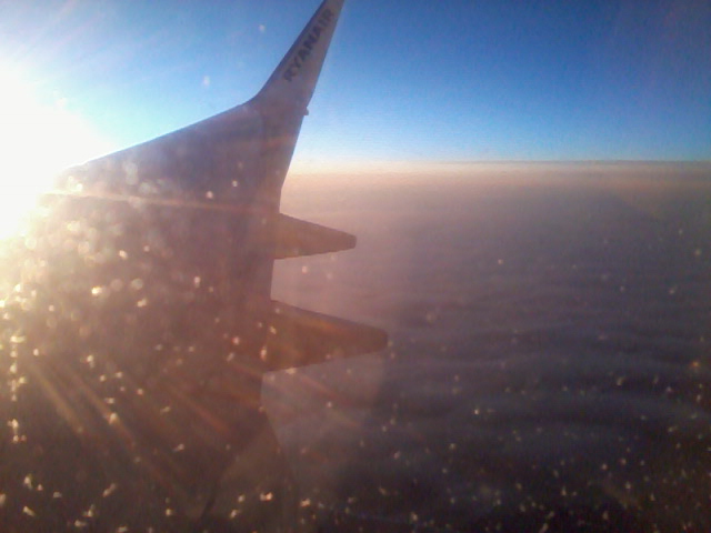 Well I flew off to Spain the other week and left behind cold and rainy Britain to fly to cold and rainy Spain! Actually it's not too cold but there is no mistaking how wet it is here!! The flight over was pretty sweet though, it's always cool flying out the clouds and into this crazy kind of area where it is always clear with a floor of clouds that look like you could jump right out on to them!